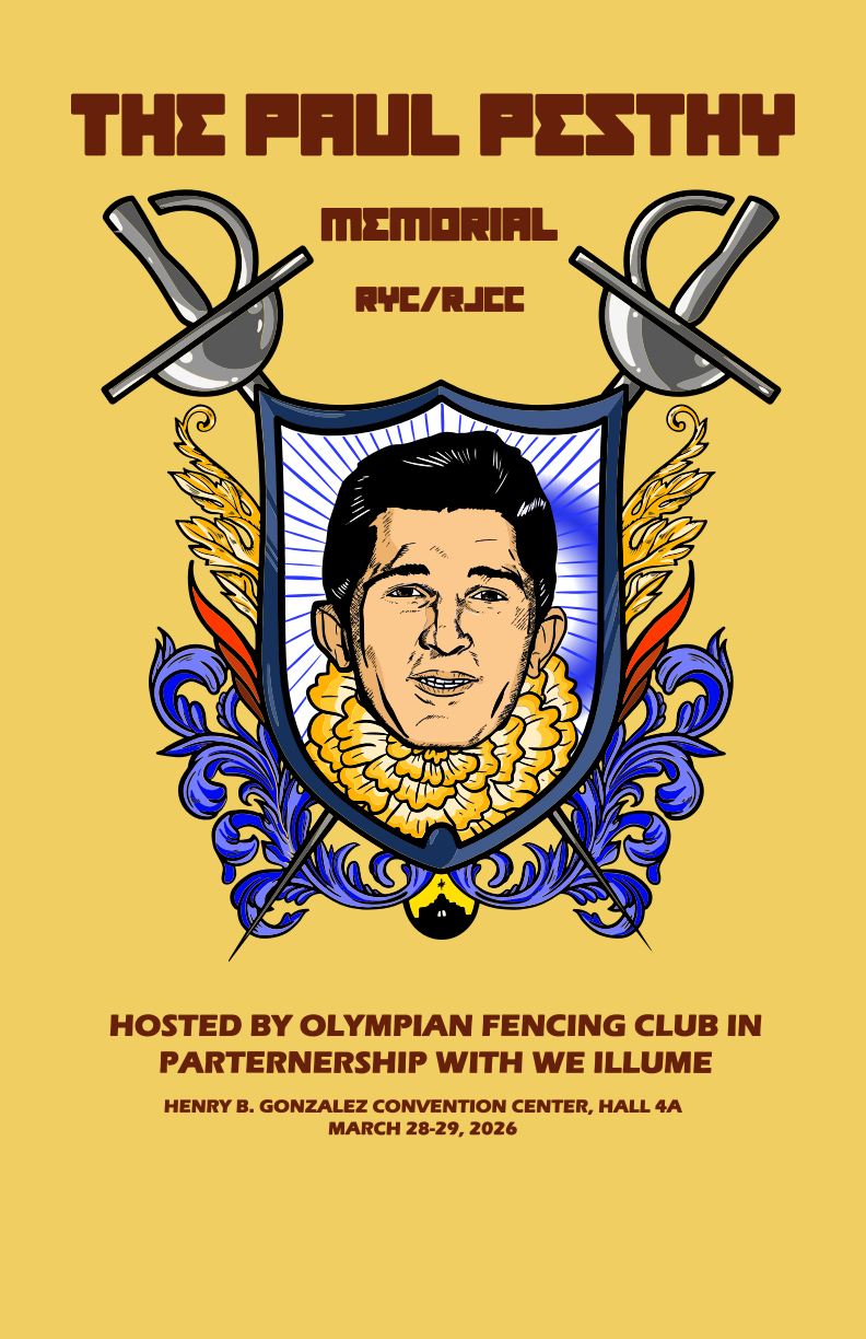 Olympian Fencing Club will be co-hosting the Paul Pesthy Memorial RYC/RJCC + Y8 tournament with We Illume in San Antonio, TX at the Henry B. Gonzalez Convention Center, Hall 4A